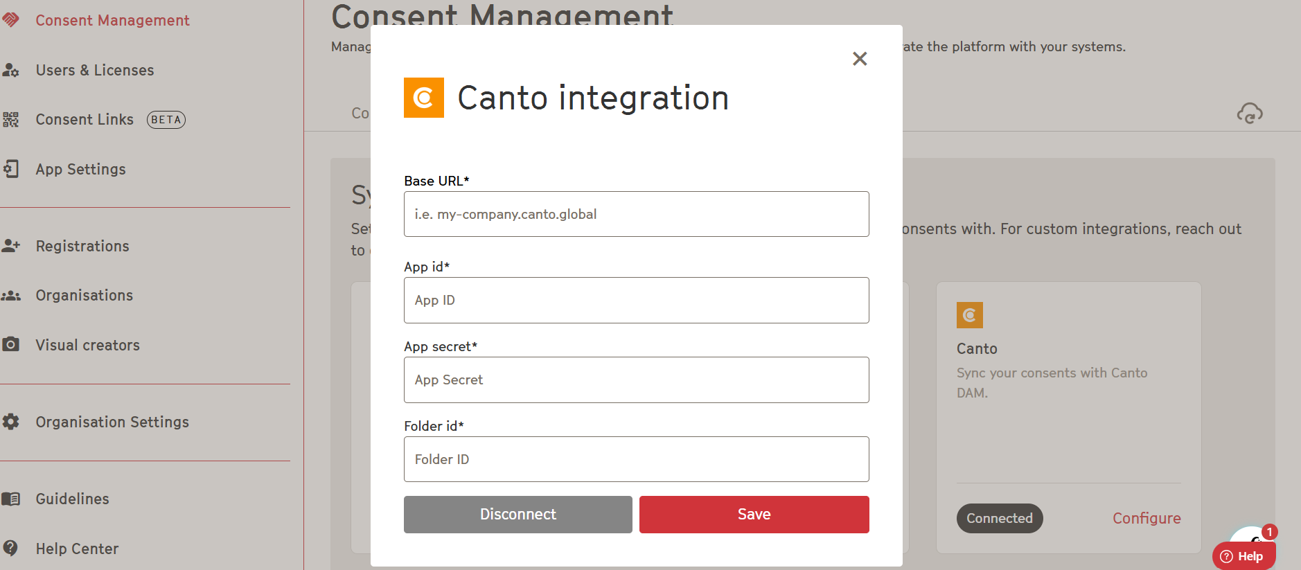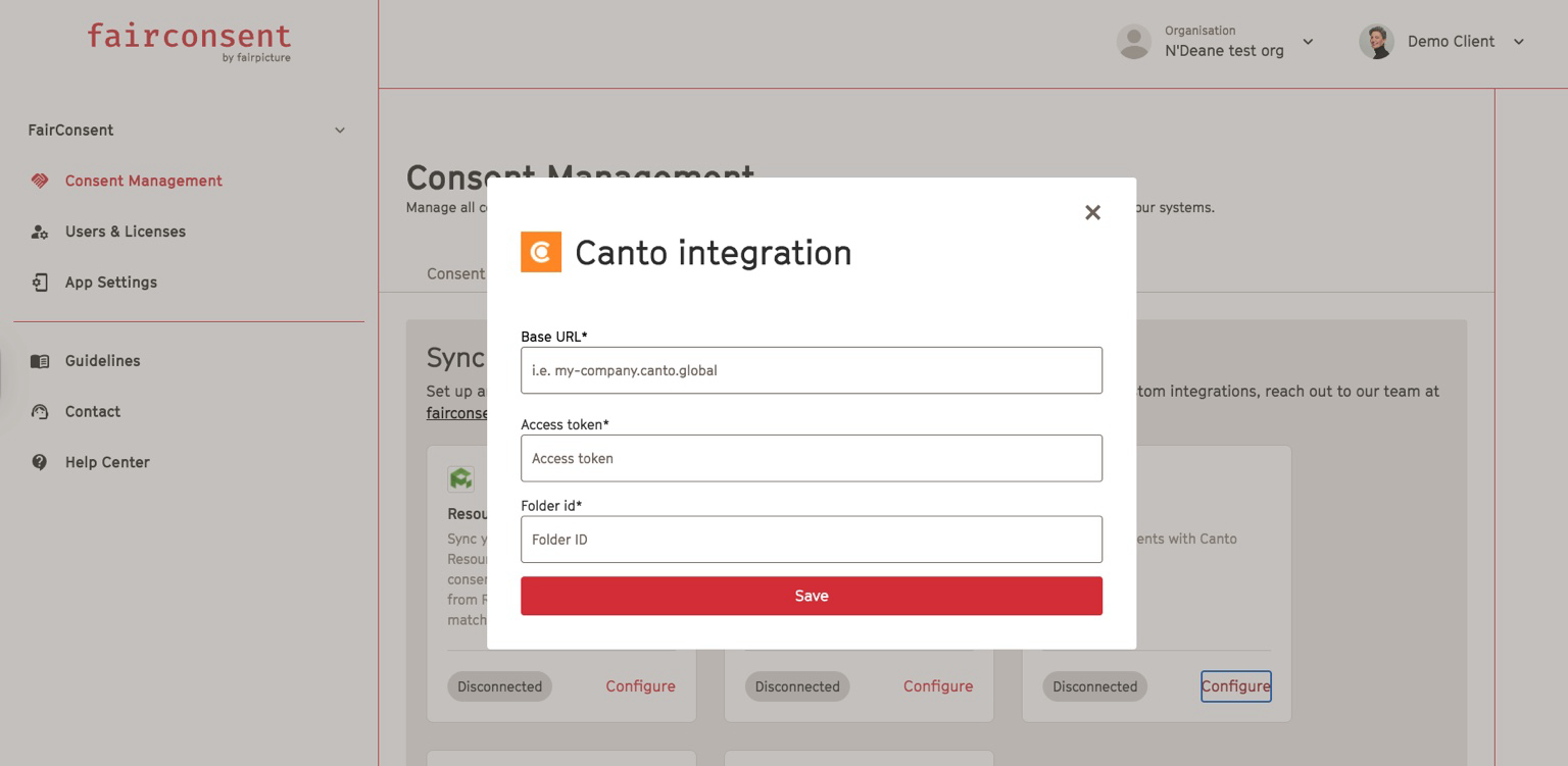 This guide explains how to integrate your FairConsent account with Canto DAM to automatically sync collected consents to your organization’s digital asset library.