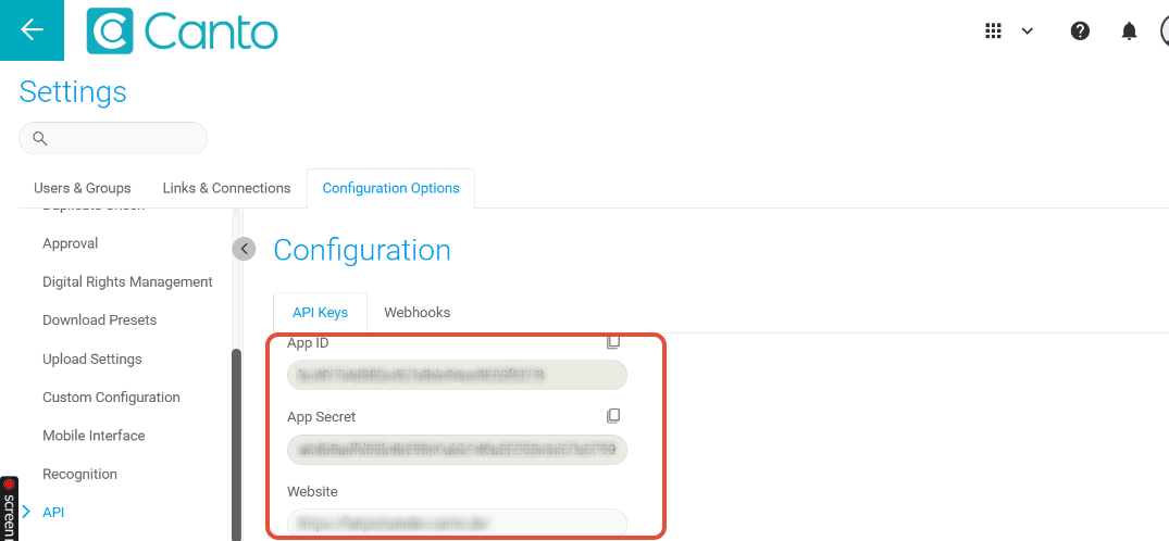 | Base URL | Your Canto instance URL (e.g. my-company.canto.global) |